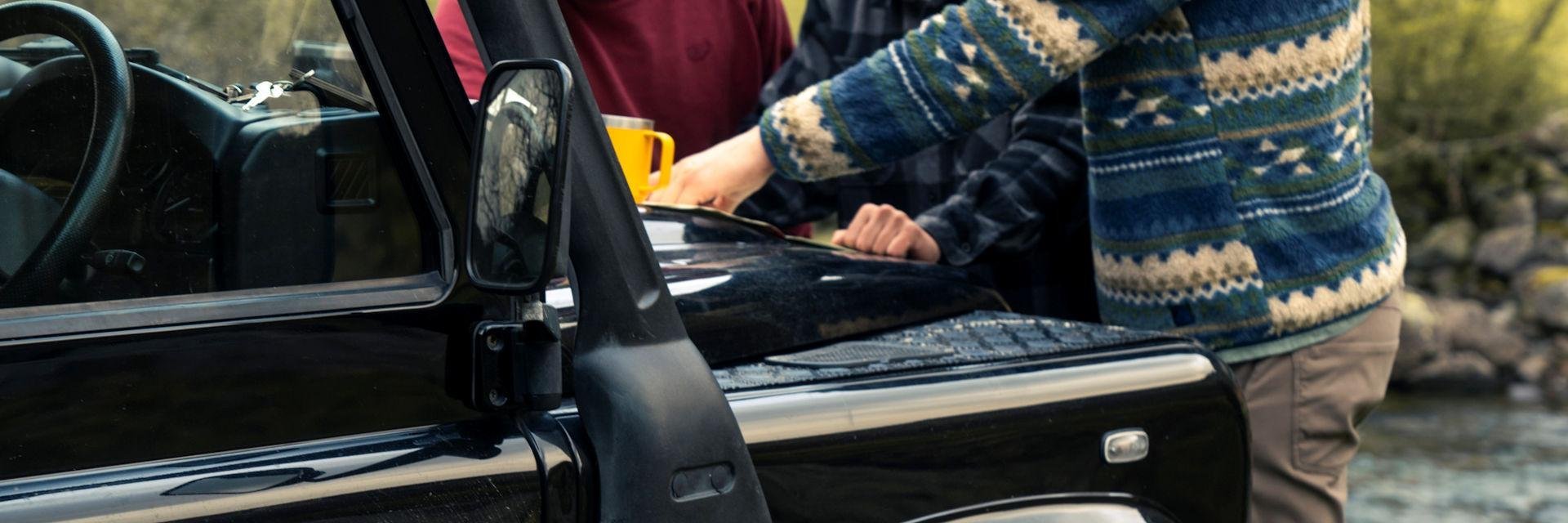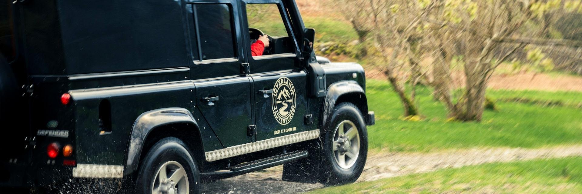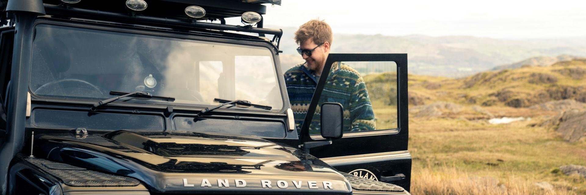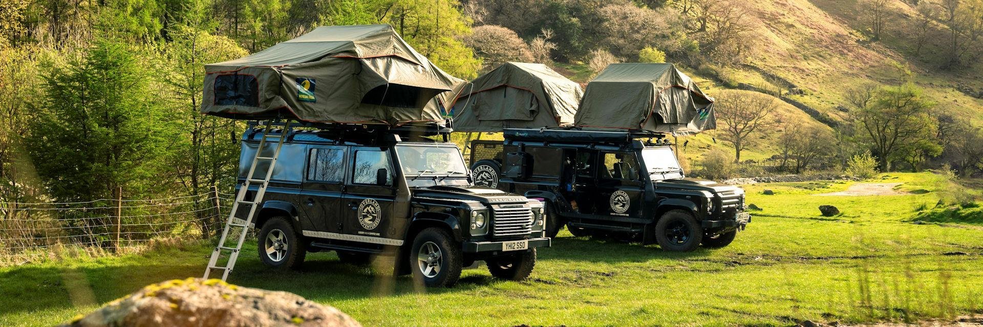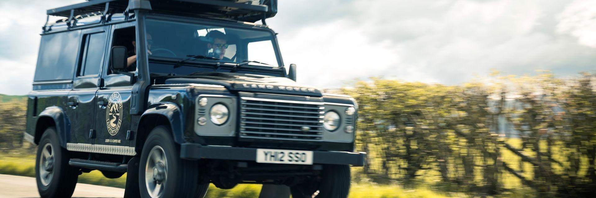 • huur van een klassieke Land Rover Defender met daktent